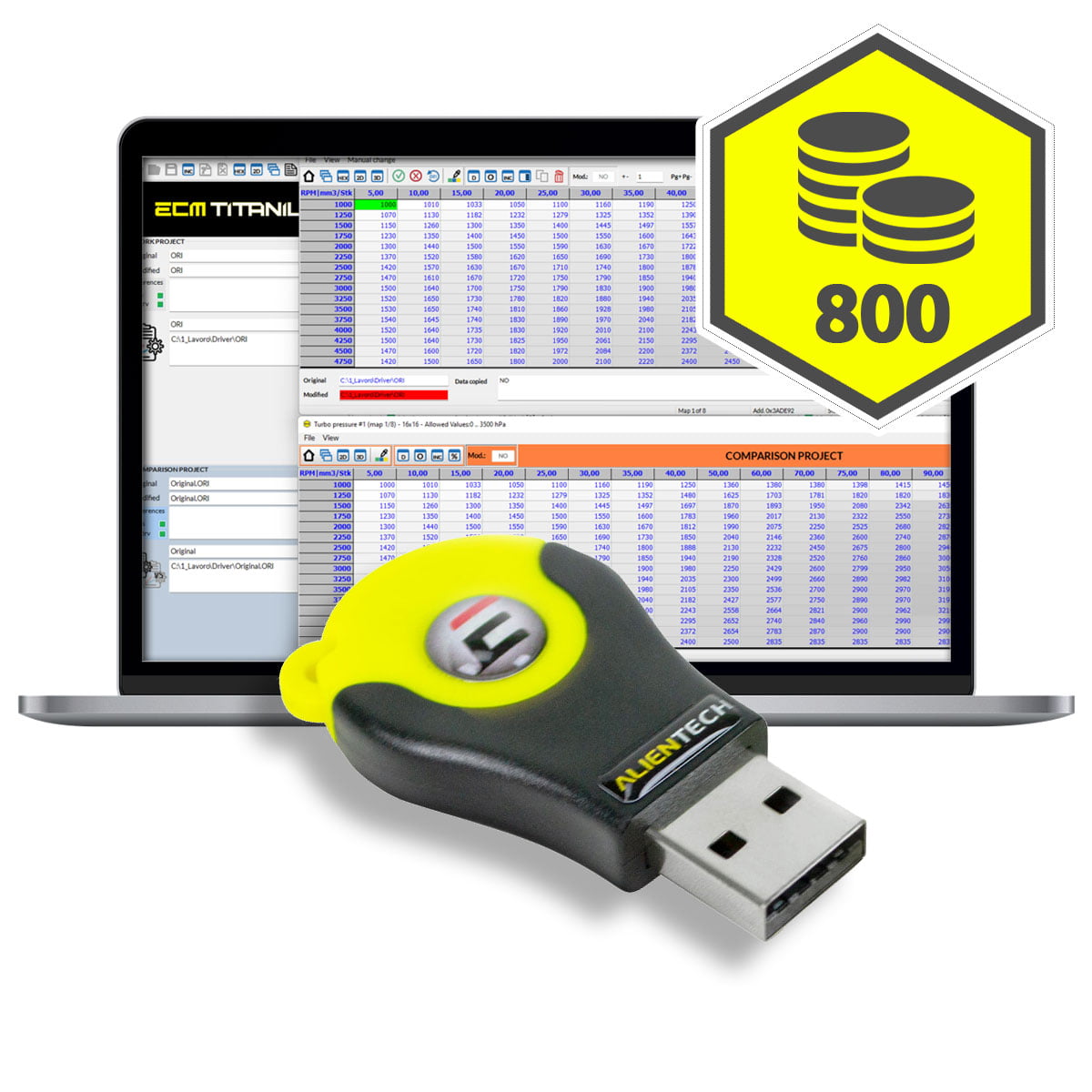 800 x crédits Alientech ECM Titanium pour télécharger le pilote et/ou la somme de contrôle.