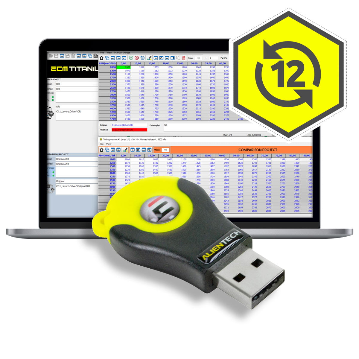 Alientech ECM Titanium Assinatura de 12 meses para suporte técnico, atualizações e downloads de drivers.